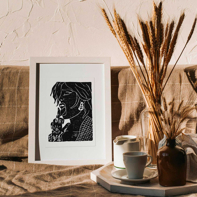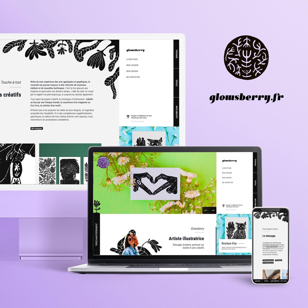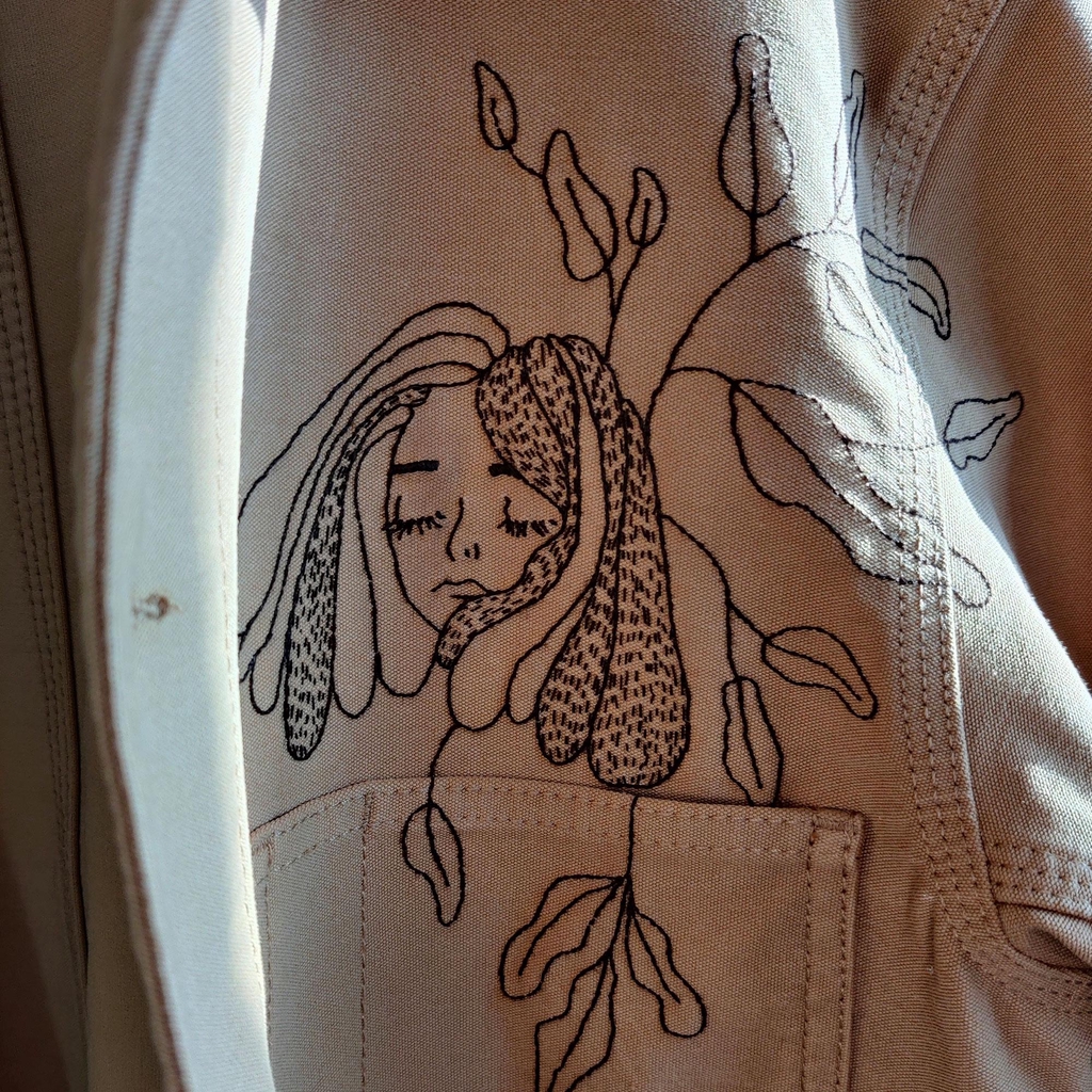 Tatouages sur rendez-vous, broderie artisanale et peinture textile sur-mesure, animation d'ateliers de linogravure et projets artistiques divers.