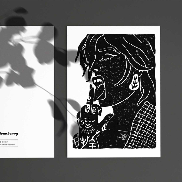 La création et réalisation des illustrations, gravures, broderies ou peintures textile sont faites à la main dans mon atelier sur Lyon.