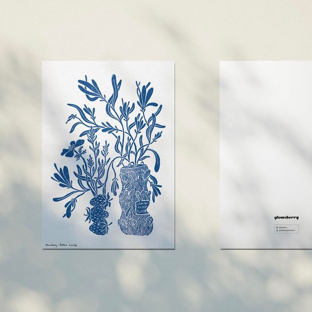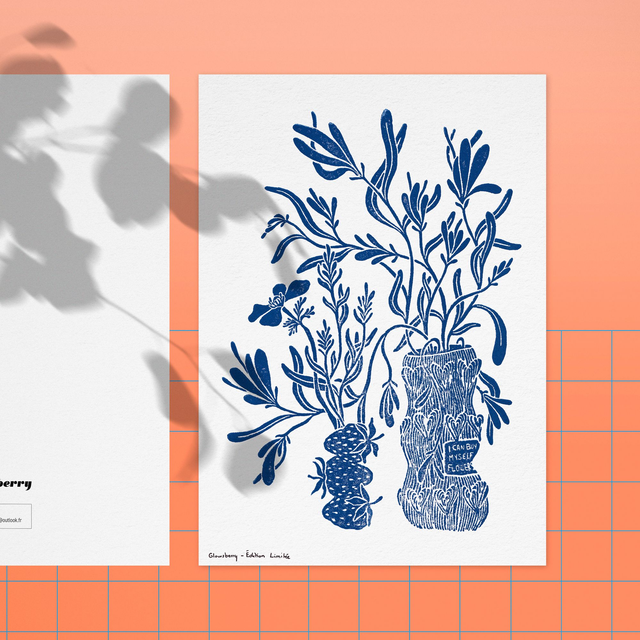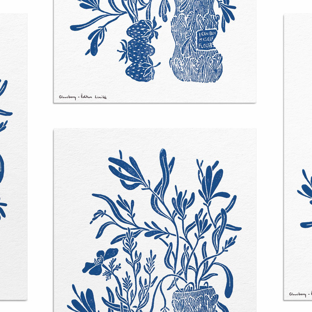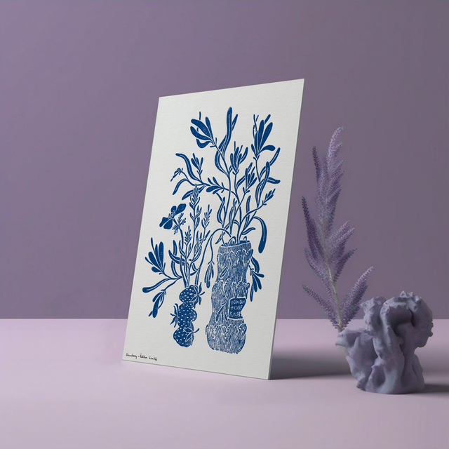 Linogravure féministe "Flowers" - Édition Limitée - Couleur bleu