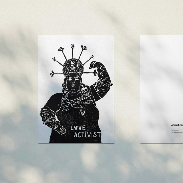 Linogravure "Love Activist" - "Muy bien Muy Lesbienne" Portrait de la queen Barbara Butch