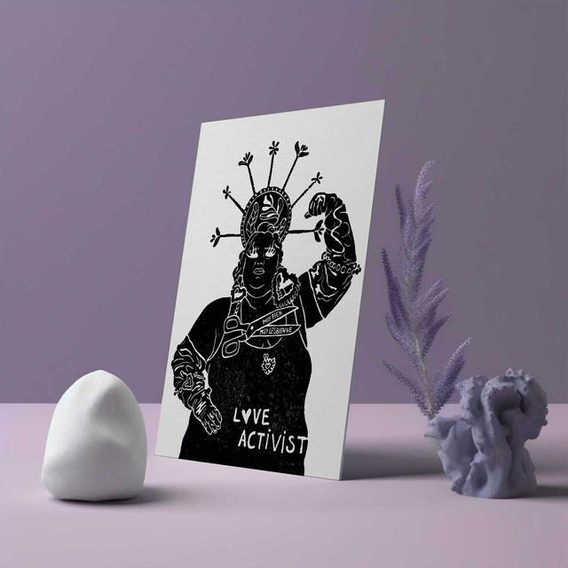 Linogravure féministe "Love activist*"