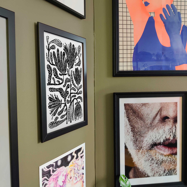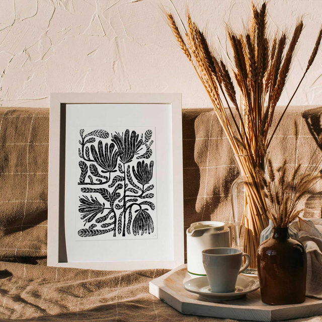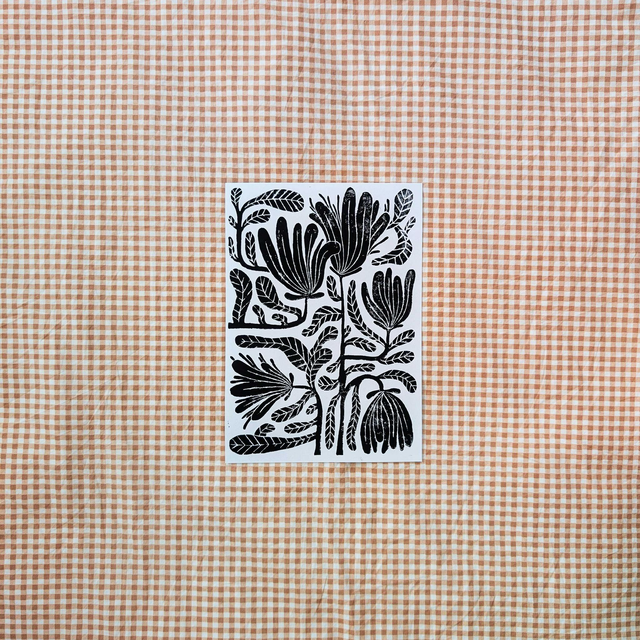 Linogravure "Printemps" - Fleurs, feuilles et pétales en bouquet