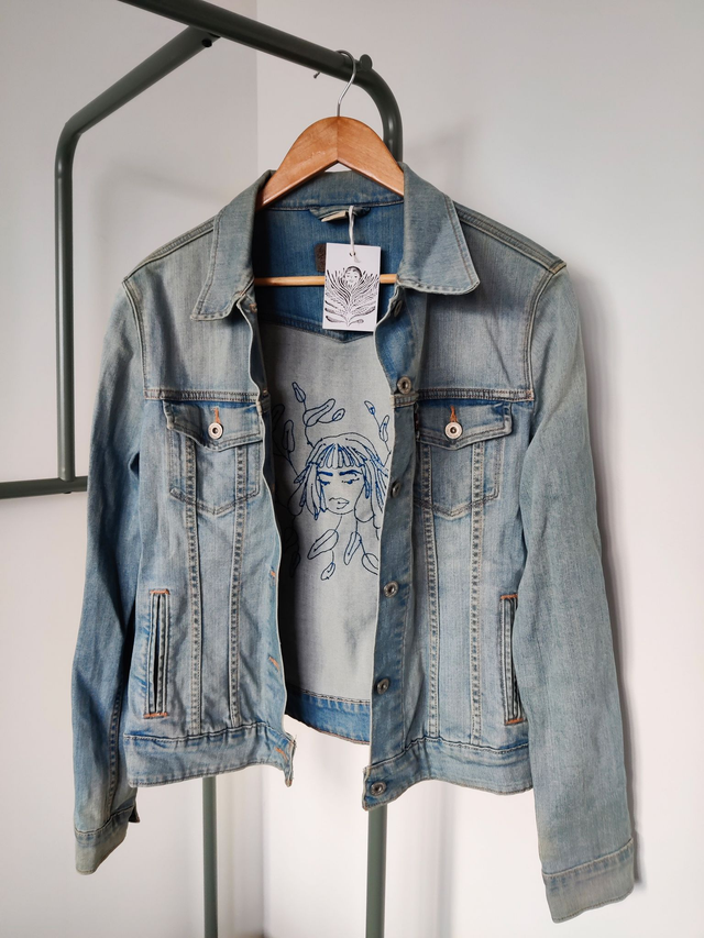 Veste en jean Levi's brodée - "Visage de louve"
